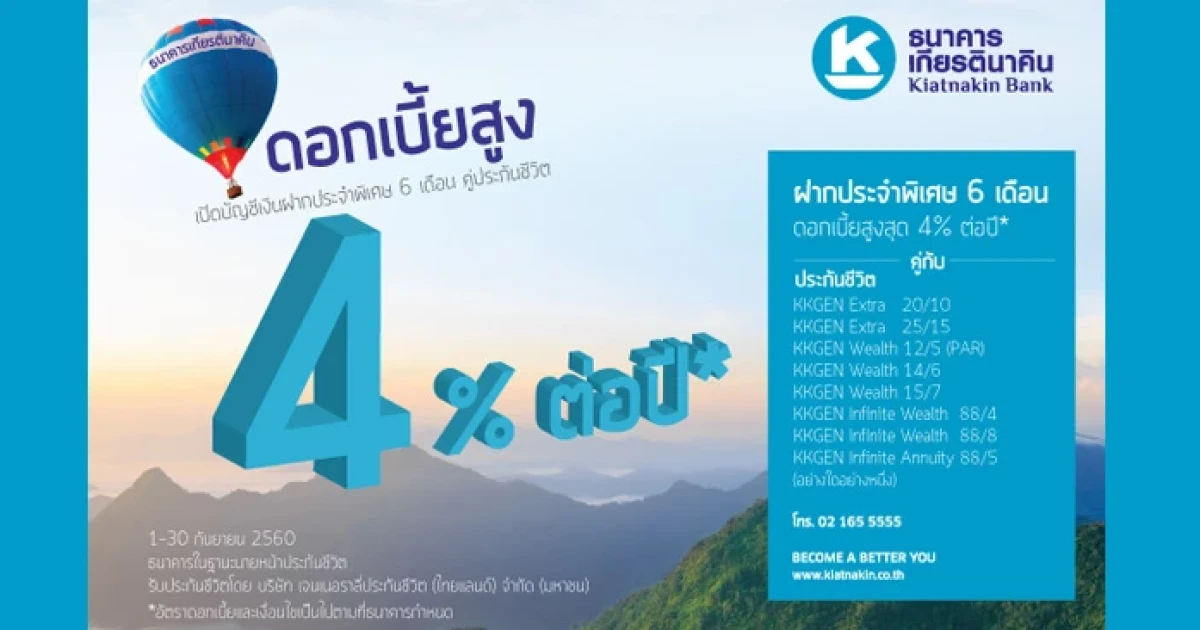 เงินฝากประจำพิเศษดอกเบี้ยสูงคู่กับประกันชีวิต จาก ธ.เกียรตินาคิน รับดอกเบี้ยสูงสุดถึง 4.00% ต่อปี