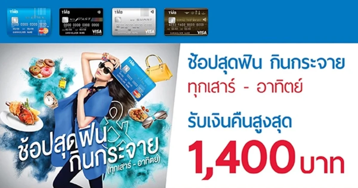 ช้อปสุดฟิน กินกระจาย รับเงินคืนสูงสุด 1,400 บาท ณ ร้านค้าที่ร่วมรายการ จากบัตรเครดิต TMB