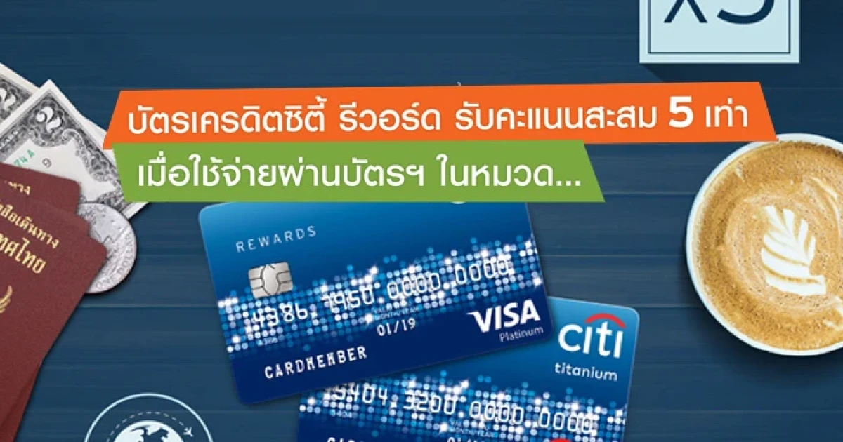 รับคะแนนสะสม 5 เท่า เมื่อใช้จ่ายผ่านบัตรฯ ซิตี้ รีวอร์ด ในหมวดร้านอาหาร ท่องเที่ยว และสกุลเงินต่างประเทศ