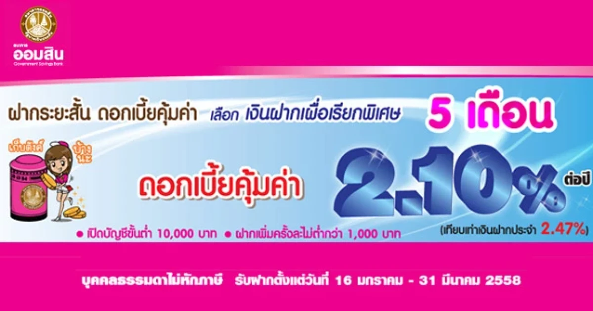 บัญชีเงินฝากเผื่อเรียกพิเศษ 5 เดือน - ธนาคารออมสิน
