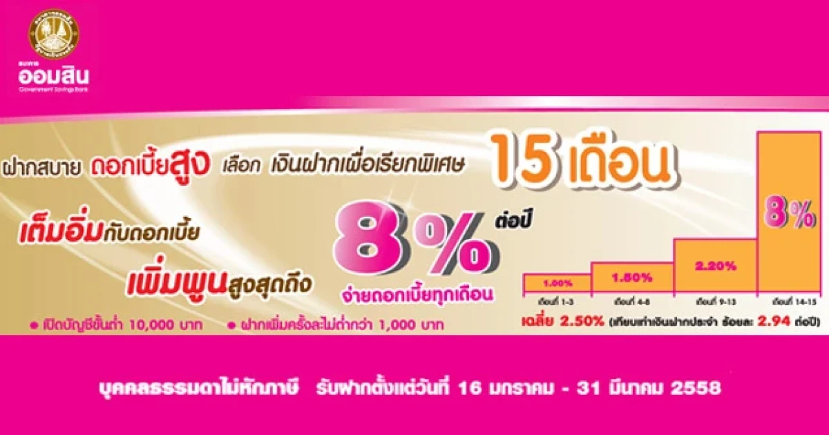 ระยะเวลาเปิดรับฝาก: 16 มกราคม - 31 มีนาคม 2558