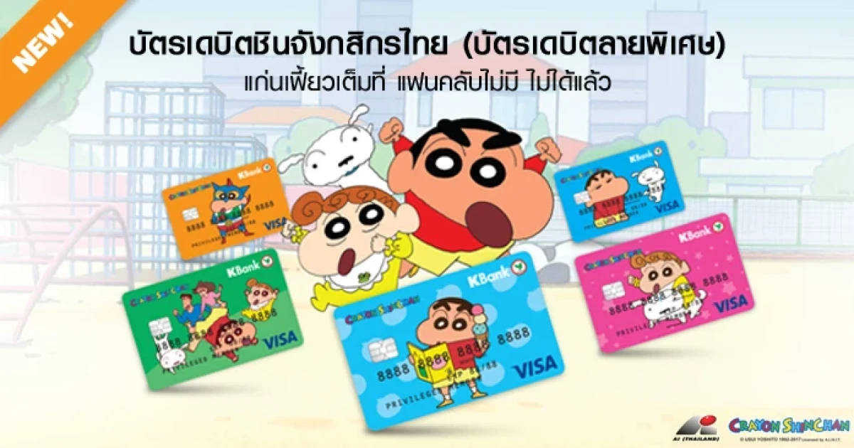 วะฮะฮะฮ่า ชินจัง มาแว้ววว... ธนาคารกสิรกรไทย เอาใจแฟนคลับชินจัง ด้วยการออกบัตรเดบิตลายพิเศษ "บัตรเดบิตชินจังกสิกรไทย" มีลายหน้าบัตรให้เลือกถึง 5 ลายด้วยกัน ซึ่งสิทธิประโยชน์หลักของบัตรนั้นก็ไม่น้อยหน้าบัตรเดบิตอื่นๆ เลยทีเดียว ไม่ว่าจะเป็นการอำนวยความสะดวกในการกดเงินสดที่ตู้ ATM ทั่วโลก หรือรูดซื้อสินค้าบริการ ณ ร้านค้าต่างๆ พร้อมรับสิทธิพิเศษตามไลฟ์สไตล์ต่างๆ อาทิ ดูหนัง ทานอาหาร ใช้บริการ Grab Taxi ในราคาพิเศษ ฯลฯ งานนี้บอกเลยว่า แฟนคลับชินจังตัวจริงไม่มีบัตรฯ นี้.. ไม่ได้แล้ว