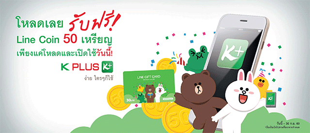 เพียงโหลดแอป K PLUS และทำรายการ โอน เติม หรือ จ่ายบิล อย่างน้อย 1 รายการในเดือนแรกที่สมัคร รับฟรี! 50 Line Coins