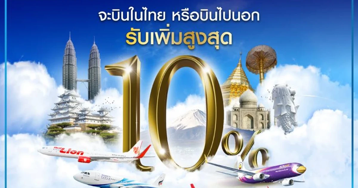 จะบินในไทย หรือบินไปนอก ก็รับเพิ่มสูงสุด 10% เมื่อบินกับ 4 สายการบิน และชำระผ่านบัตรเครดิตซิตี้ วีซ่า