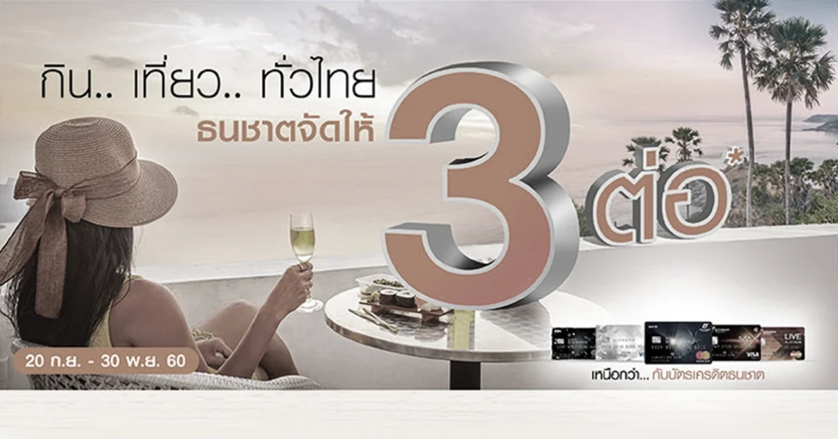 กิน เที่ยว ทั่วไทย.. กับบัตรเครดิตธนชาต จัดให้ 3 ต่อ ทั้งส่วนลด เงินคืนสุดคุ้ม พร้อมคะแนนสะสมสูงสุด 11 เท่า