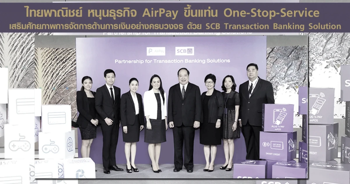 ธนาคารไทยพาณิชย์ เดินหน้ารุกบริการระบบการจัดการด้านการเงินเพื่อภาคธุรกิจอย่างต่อเนื่อง ขยายเครือข่ายพันธมิตรสู่กลุ่มธุรกิจเทคโนโลยีการรับเงินและการชำระเงิน จับมือ บริษัท แอร์เพย์ (ประเทศไทย) จำกัด ผู้ให้บริการชำระเงินออนไลน์ที่เติบโตอย่างก้าวกระโดด มอบโซลูชั่นการจัดการด้านการเงินครบวงจร เสริมศักยภาพการให้บริการเพื่อผลักดันแอร์เพย์เดินสู่เป้าหมาย One-Stop-Service ที่สามารถตอบโจทย์ลูกค้า AirPay Application และเครือข่าย AirPay Counter ที่มีการทำธุรกรรมอย่างหลากหลาย อาทิ เติมเงินเกมออนไลน์ ช้อปปิ้งออนไลน์ เติมเงินโทรศัพท์มือถือ จ่ายบิล ตลอดจนการซื้อตั๋วภาพยนตร์ รวมถึงการให้บริการรับชำระเงินด้วยเครื่องรูดบัตรมือถือ (mPOS) เพื่อเพิ่มช่องทางการชำระเงินให้กับธุรกิจในเครือ AirPay อย่างครบวงจร ตอบสนองไลฟ์สไตล์ของลูกค้าในยุคดิจิทัลได้อย่างสมบูรณ์แบบ ธนาคารไทยพาณิชย์ยังคงมุ่งมั่นพัฒนาผลิตภัณฑ์และบริการทางการเงิน สนับสนุนลูกค้าธุรกิจด้วยโซลูชั่นที่ทันสมัย ตอกย้ำความเป็นผู้นำด้านบริการธุรกรรมทางการเงินที่ดีที่สุด