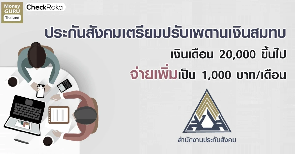 ประกันสังคมเตรียมปรับเพดานเงินสมทบ เงินเดือน 20,000 ขึ้นไป จ่ายเพิ่มเป็น 1,000 บาท/เดือน