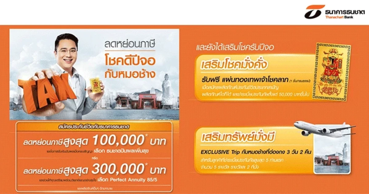 สมัครประกันชีวิตลดหย่อนภาษีกับธนาคารธนชาต และยังได้เสริมโชค เสริมทรัพย์รับปีจอกับหมอช้าง