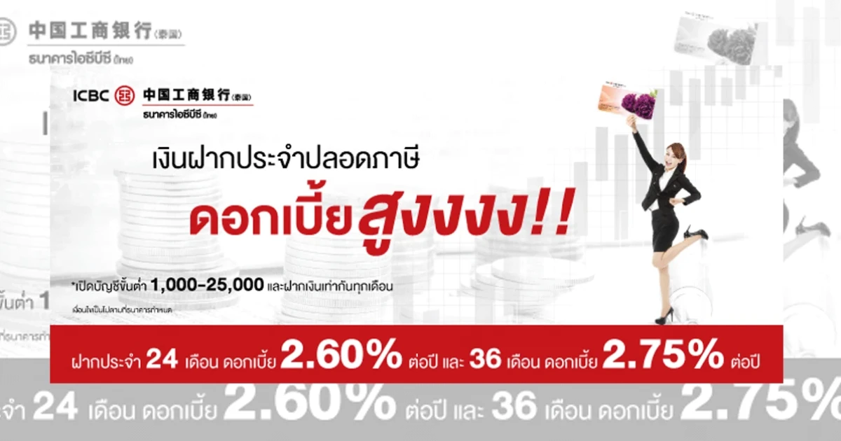 ออมเงินสบายใจ ไม่เสียภาษี รับดอกเบี้ยสูงกับธนาคารไอซีบีซี (ไทย)