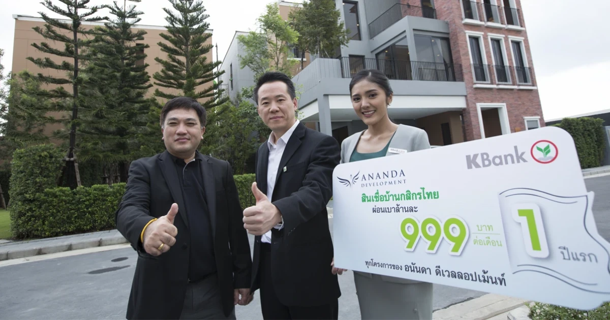 อนันดาฯ ร่วมกับ Kbank งัดกลยุทธ์ผ่อนน้อย ส่งแคมเปญโดนใจ "ผ่อนเบาล้านละ 999" เอาใจลูกค้าโครงการแนวราบ