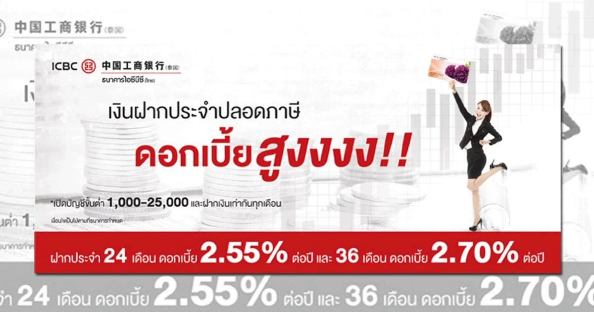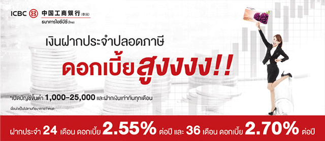 ออมเงินสบายใจ ไม่เสียภาษี รับดอกเบี้ยสูงกับธนาคารไอซีบีซี (ไทย)