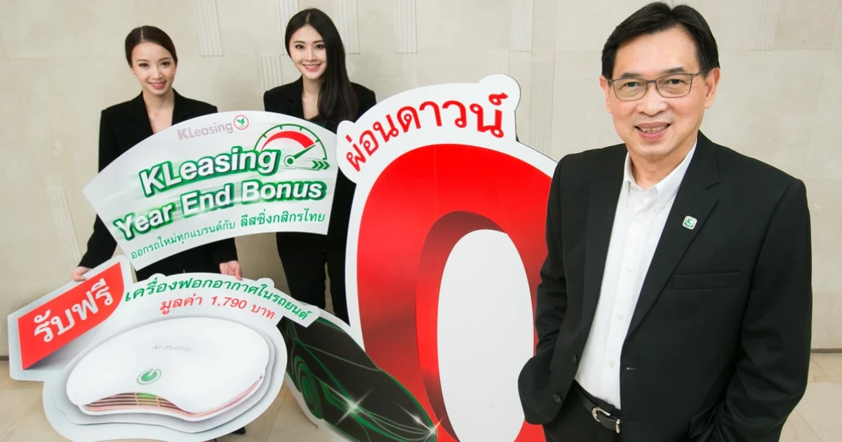 นายศาศวัต วีระปรีย ประธานกรรมการบริหาร บริษัท ลีสซิ่งกสิกรไทย จำกัด เปิดตัวแคมเปญ KLeasing Year End Bonus ต้อนรับมหกรรม Thailand International Motor Expo 2017 เมื่อสมัครสินเชื่อเช่าซื้อรถใหม่กับลีสซิ่งกสิกรไทย ระหว่างวันที่ 29 พฤศจิกายน - 11 ธันวาคม 2560 และออกรถภายใน 31 มกราคม 2561 รับสิทธิพิเศษดอกเบี้ยต่ำ 1.89%* ผ่อนดาวน์ 0% สูงสุด 6 เดือนผ่านบัตรเครดิตกสิกรไทย พร้อมรับฟรี! เครื่องฟอกอากาศในรถยนต์ มูลค่า 1,790 บาท ที่บูธลีสซิ่งกสิกรไทยภายในงาน Motor Expo 2017 อิมแพ็ค เมืองทองธานี หรือ โชว์รูมผู้แทนจำหน่ายรถยนต์ทั่วประเทศ