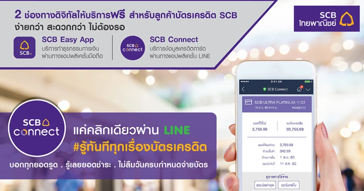 - SCB Connect บริการข้อมูลเครดิตการ์ด ผ่านทางแอปพลิเคชั่น LINE