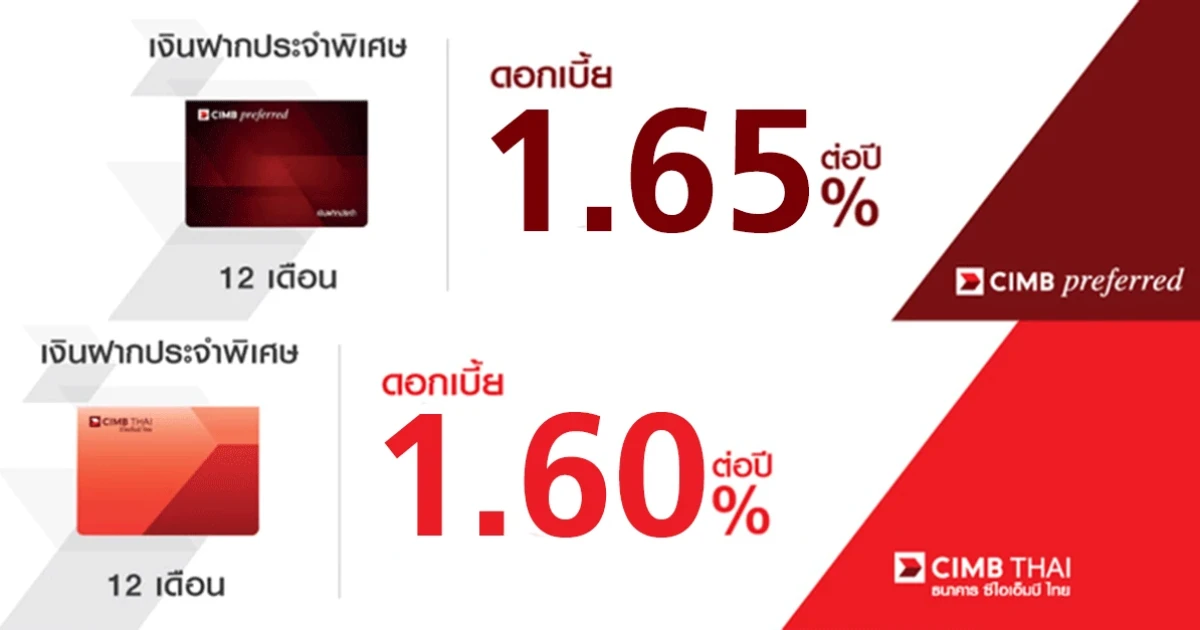 บัญชีเงินฝากประจำพิเศษ 12 เดือน อัตราดอกเบี้ย 1.65% ต่อปี สำหรับลูกค้า CIMB Preferred