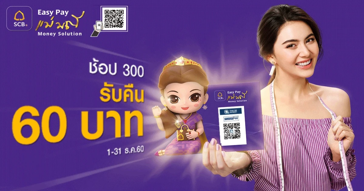 จ่ายง่ายๆ แค่สแกน ได้ทั่วไทย ช้อป 300 รับคืน 60 บาท กับ SCB Easy Pay แม่มณี Money Solution
