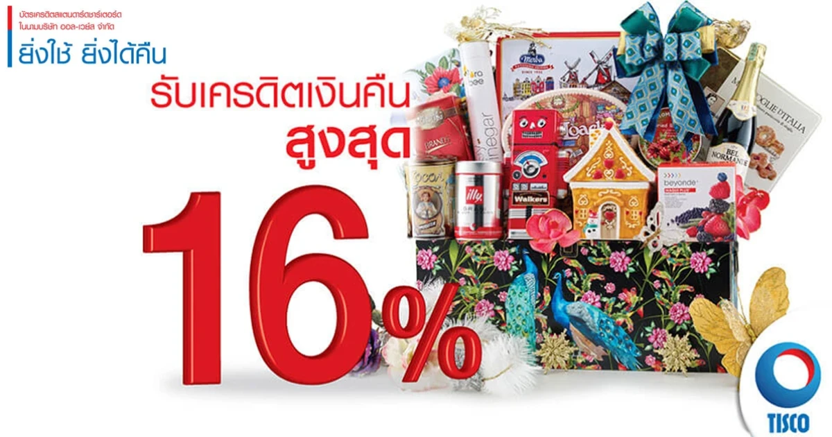 รับเครดิตเงินคืนสูงสุด 16% เมื่อซื้อกระเช้าของขวัญที่เซ็นทรัล ฟู้ด ฮอลล์ ท็อปส์ มาร์เก็ต, ท็อปส์ ซูเปอร์สโตร์, ซูเปอร์คุ้ม ท็อปส์ เดลี่ ทุกสาขา และ ท็อปส์ ออนไลน์ ผ่านบัตรเครดิตสแตนดาร์ดชาร์เตอร์ด