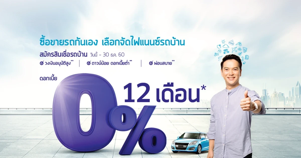 - เฉพาะลูกค้าที่สมัครใช้บริการสินเชื่อรถยนต์มือสอง (รถบ้าน) ตั้งแต่วันนี้ - 30 ธ.ค. 60 เท่านั้น