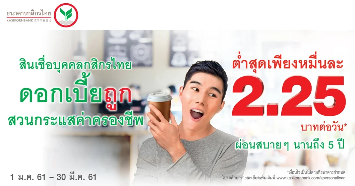 เงื่อนไขโครงการสินเชื่อบุคคลกสิกรไทยดอกเบี้ยต่ำสุดหมื่นละ 2.25 บาทต่อวัน