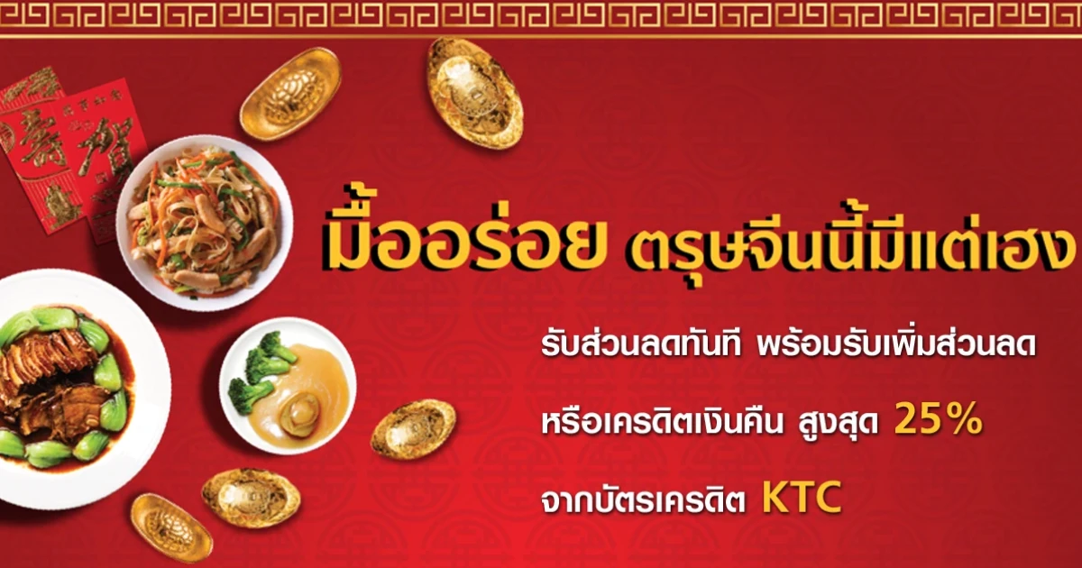 มื้ออร่อย ตรุษจีนนี้มีแต่เฮง กับบัตรเครดิต KTC รับส่วนลดทันที พร้อมรับเพิ่มส่วนลด หรือเครดิตเงินคืน สูงสุด 25% ด้วยคะแนนสะสม KTC FOREVER REWARDS