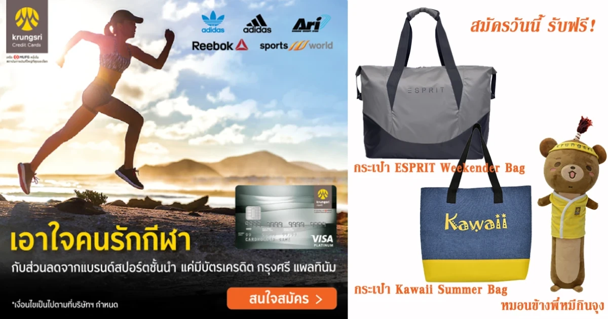 เอาใจคนรักกีฬา กับส่วนลดจากแบรนด์สปอร์ตชั้นนำ แค่มีบัตรฯ กรุงศรี แพลทินัม สมัครวันนี้! รับของแถมเพียบ