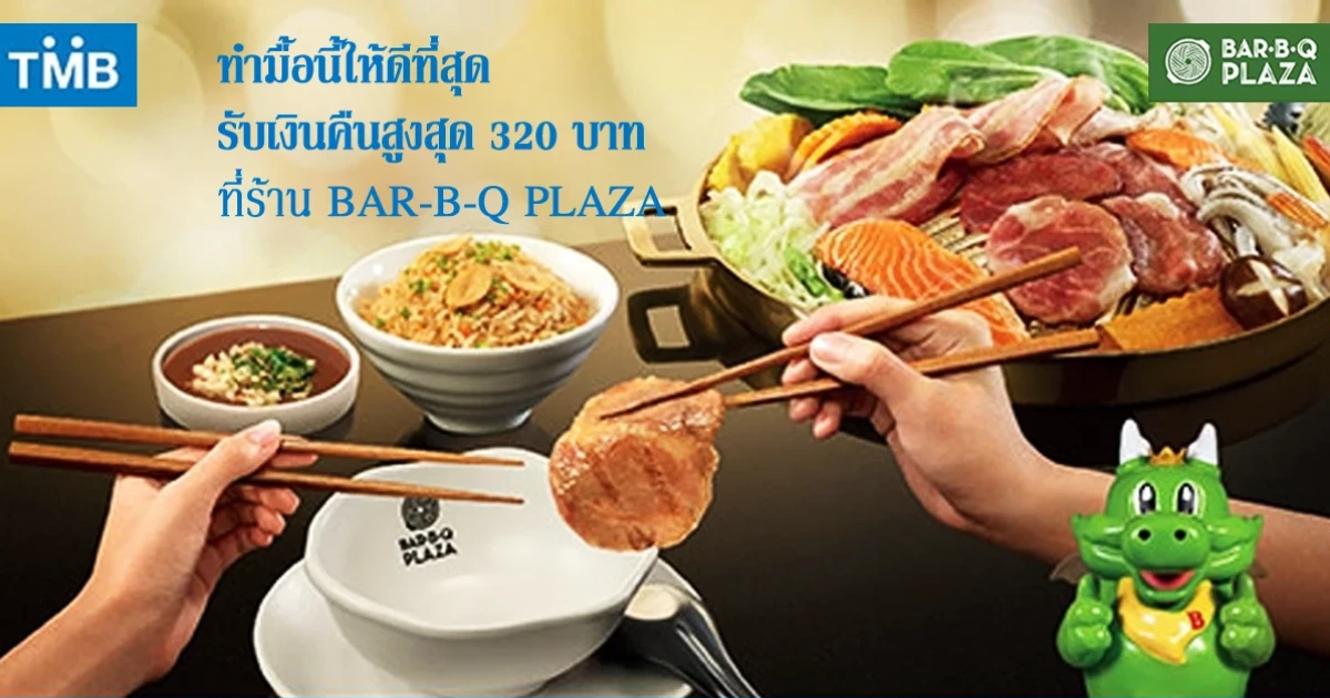 ทำมื้อนี้ให้ดีที่สุด.. รับเงินคืนสูงสุด 320 บาท เมื่อทานอาหารที่ร้าน Bar-B-Q Plaza และชำระผ่านบัตรฯ TMB