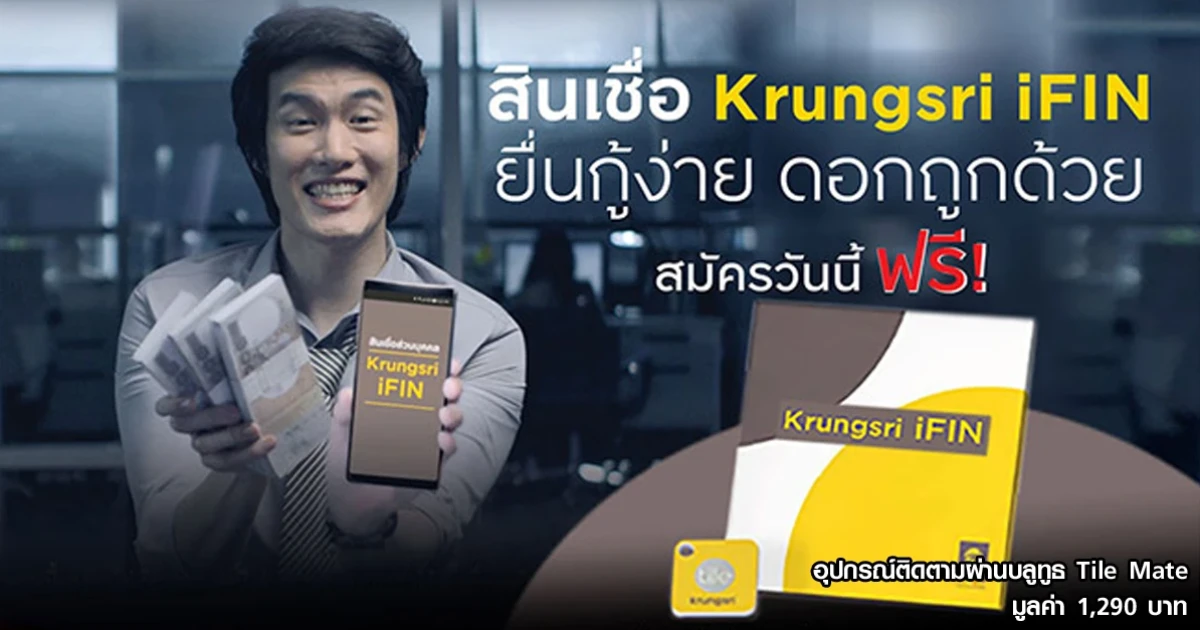 สินเชื่อ Krungsri iFIN ยื่นกู้ง่าย ดอกถูกด้วย สมัครวันนี้ฟรี! อุปกรณ์ติดตามผ่านบลูทูธ Tile Mate