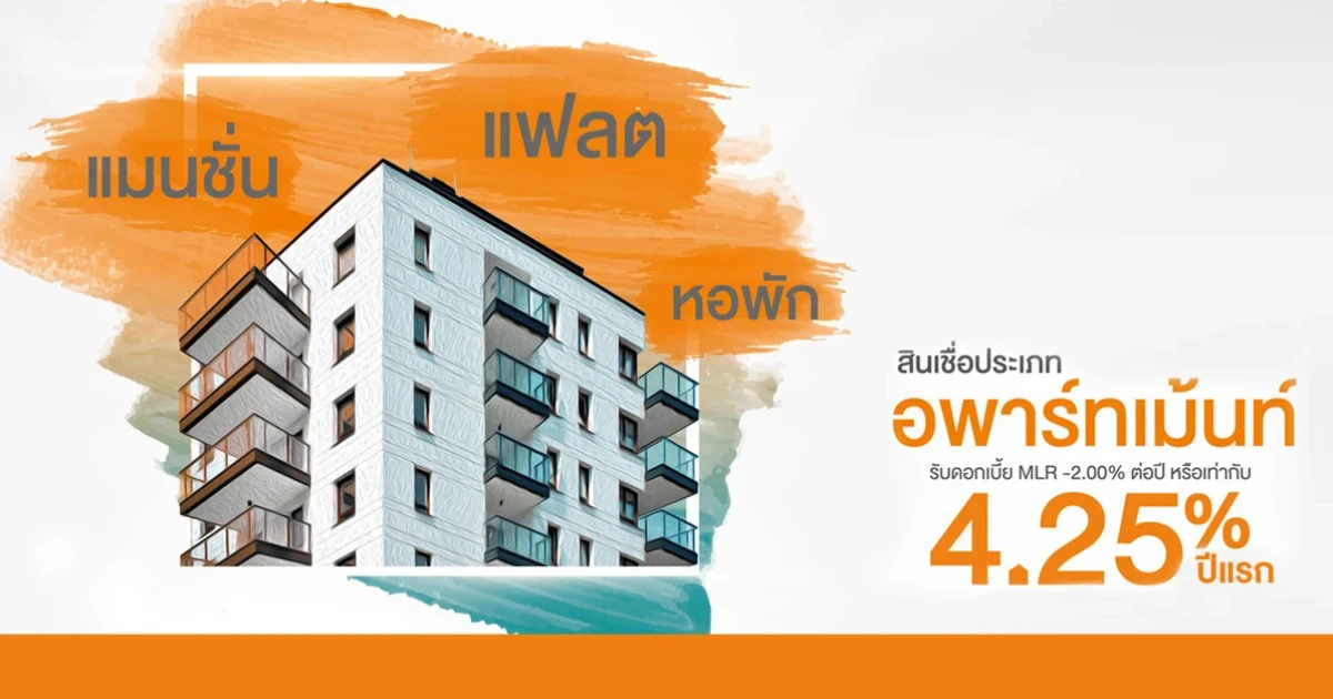 สินเชื่อประเภทอพาร์ทเม้นท์ รับดอกเบี้ย 4.25% ปีแรก จาก ธอส.