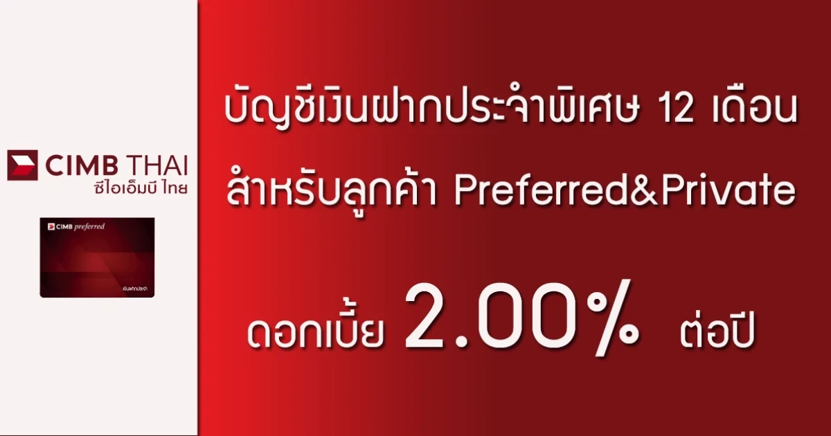 บัญชีเงินฝากประจำพิเศษ 12 เดือน สำหรับลูกค้า Preferred&Private - ธ.ซีไอเอ็มบี ไทย