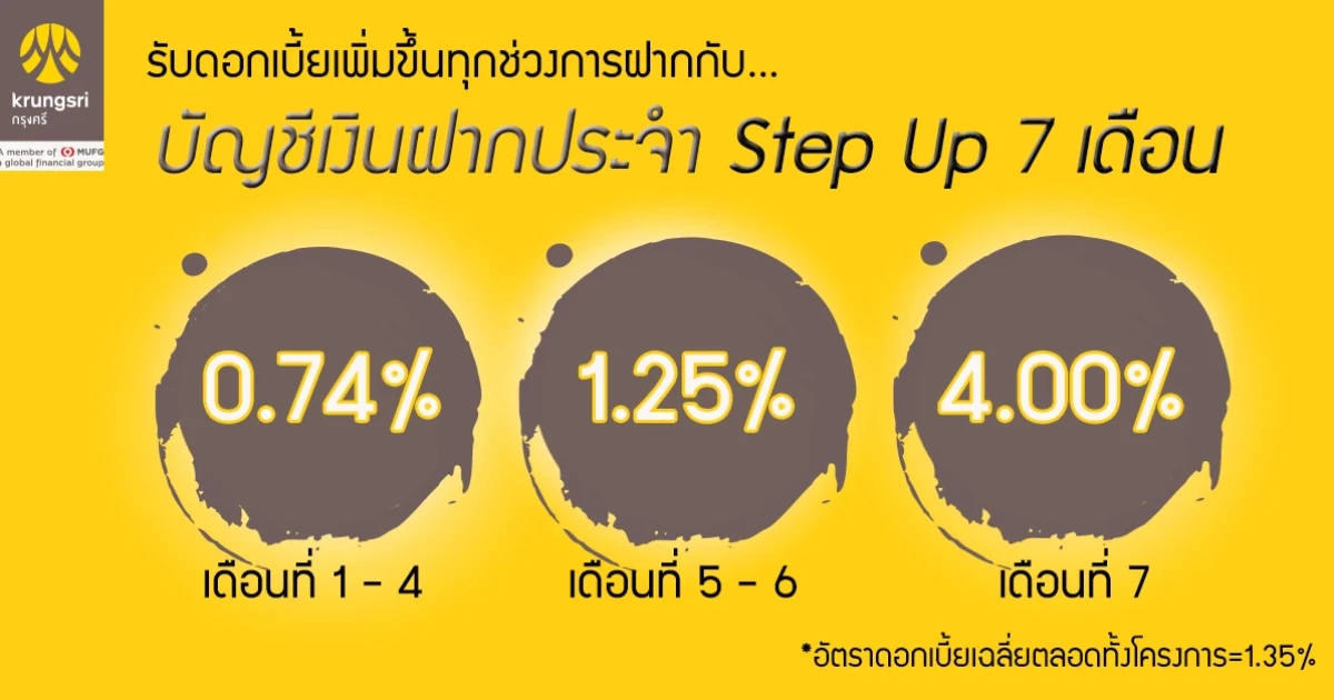 บัญชีเงินฝากประจำ Step Up 7 เดือน - ธ.กรุงศรีอยุธยา