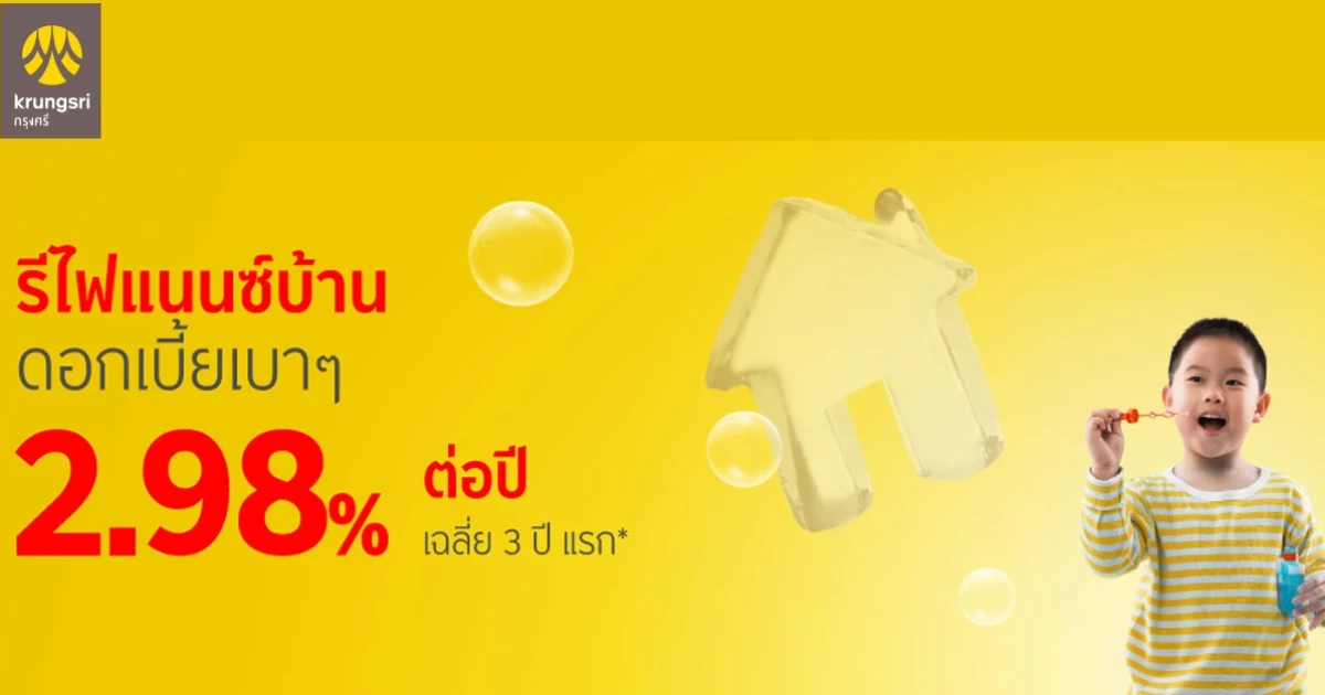 ย้ายแล้ว...เหลือค่าดอกเบี้ยมาทำอะไรได้ตั้งเยอะ กับสินเชื่อรีไฟแนนซ์บ้านดอกเบี้ย 2.98% ต่อปี ธ.กรุงศรีฯ