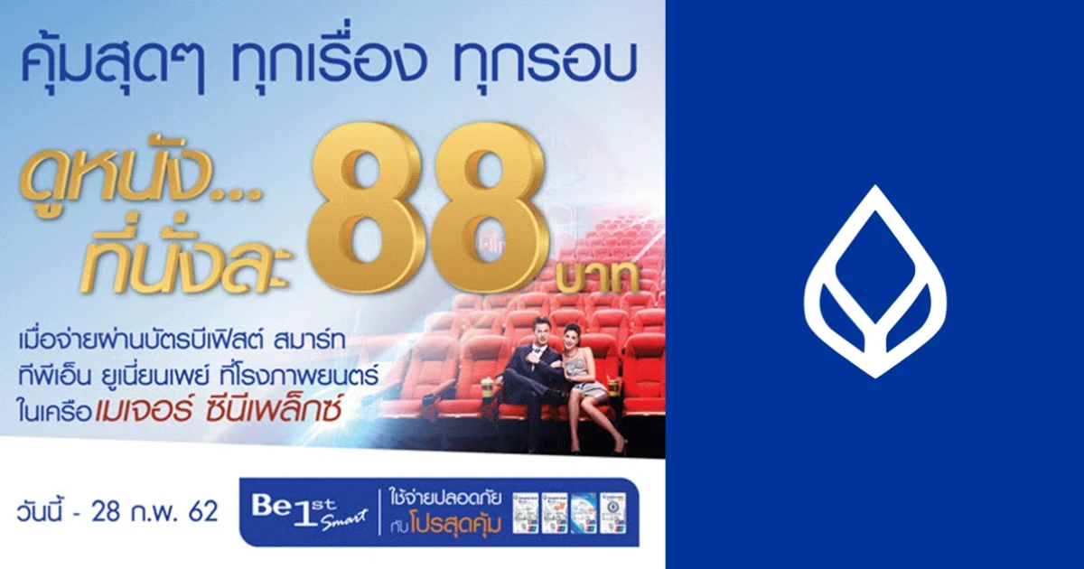 ดูหนังที่ละ 88 บาท ทุกเรื่อง ทุกรอบ เมื่อจ่ายผ่านบัตร บีเฟิสต์ สมาร์ท ทีพีเอ็น ยูเนี่ยนเพย์ จาก ธ.กรุงเทพ
