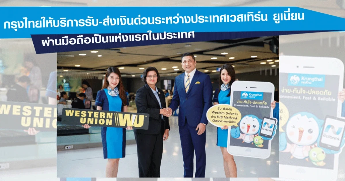 ธนาคารกรุงไทยให้บริการรับ-ส่งเงินด่วนระหว่างประเทศเวสเทิร์น ยูเนี่ยน ผ่านบริการ KTB netbank เป็นธนาคารแรกในประเทศไทย เพิ่มความสะดวก รวดเร็ว รองรับยุคดิจิทัล ตั้งเป้าเติบโตในปีนี้ 5 - 10%