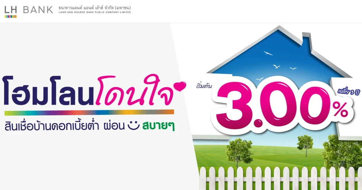 โฮมโลนโดนใจ สินเชื่อบ้านดอกเบี้ยต่ำ ผ่อนสบายๆ เริ่มต้น 3.00% เฉลี่ย 3 ปี