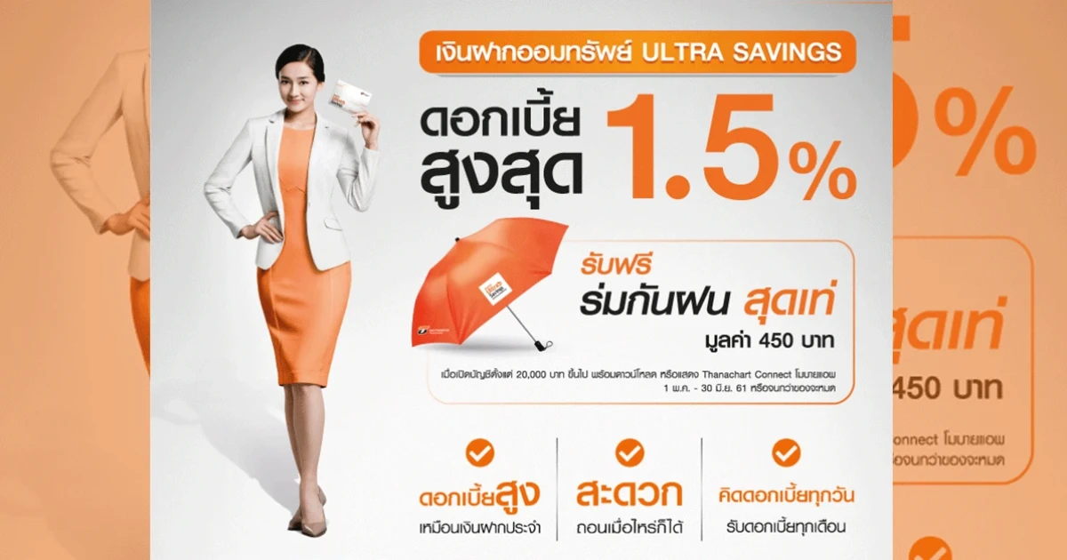 เปิดบัญชีเงินฝากออมทรัพย์อัลตร้าเซฟวิ่ง พร้อมดาวน์โหลด Thanachart Connect รับฟรี ร่มกันฝนสุดเท่