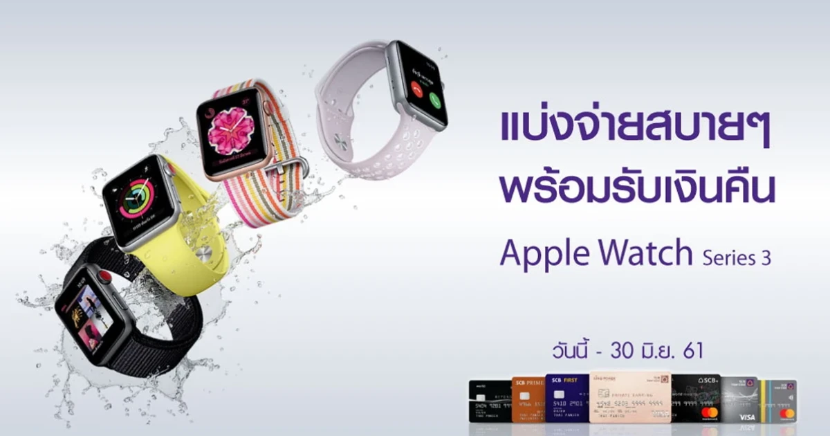 สิทธิพิเศษเฉพาะบัตรเครดิตไทยพาณิชย์.. แบ่งจ่ายสบายๆ 0% นานสูงสุด 10 เดือน พร้อมรับเครดิตเงินคืนสูงสุด 20% สำหรับ Apple Watch Series 3 ที่ Studio 7 และ Banana ทุกสาขา
