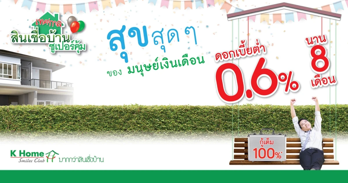 เทศกาลสินเชื่อบ้านซูเปอร์คุ้ม สุขสุดๆ ของมนุษย์เงินเดือน ดอกเบี้ยต่ำ 0.6% นาน 8 เดือน