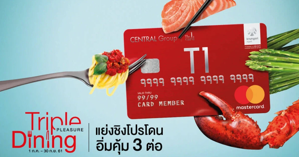 Triple Dining แย่งชิงโปรโดน อิ่มคุ้ม 3 ต่อ! รับส่วนลดสูงสุด 40% พร้อมรับเครดิตเงินคืนรวมสูงสุด 1,800 บาท ณ ร้านอาหารที่ร่วมรายการ สิทธิพิเศษจากบัตรเครดิต เซ็นทรัล เดอะวัน