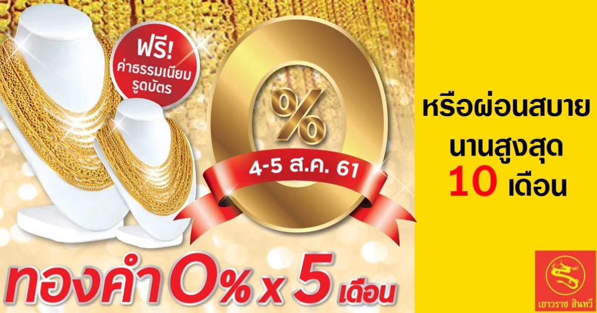 ผ่อนทองคำ 0% นาน 5 เดือน กับห้างทองเยาวราชสินทวี ฟรี! ค่าธรรมเนียมรูดบัตร จากบัตรเครดิตกรุงศรี