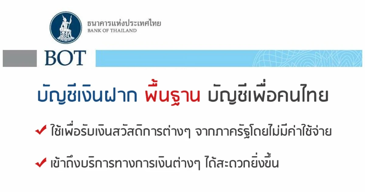 บริการบัญชีเงินฝากพื้นฐาน เพื่อให้คนไทยสามารถเข้าถึงบริการทางการเงินได้มากขึ้น