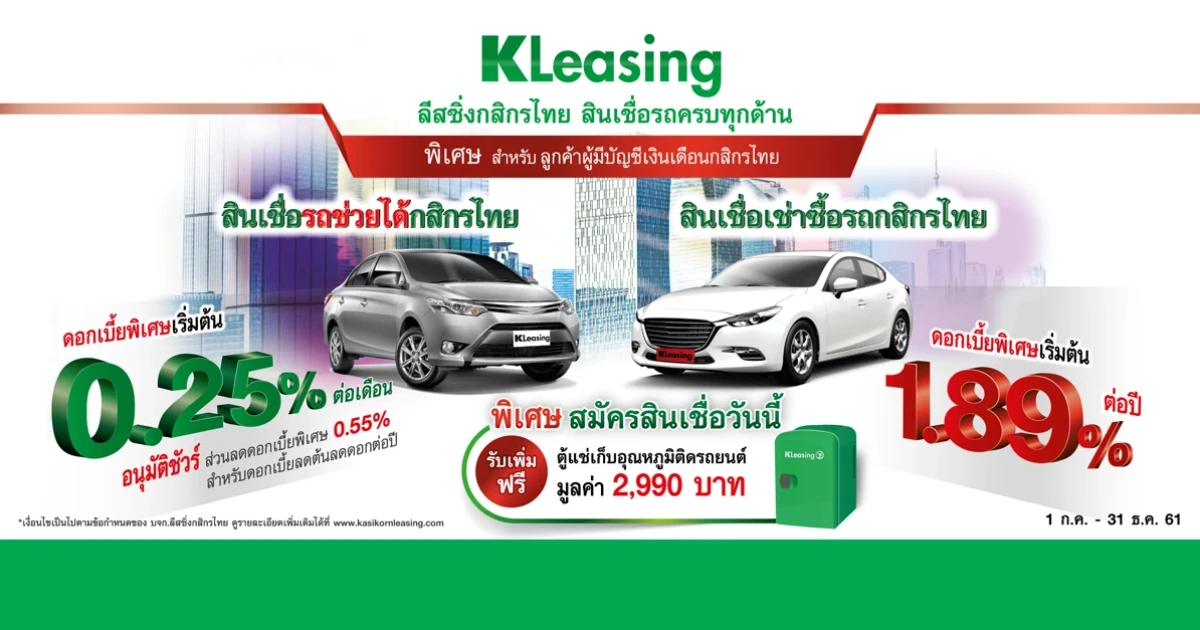 - หลักเกณฑ์และเงื่อนไขอื่นๆ เป็นไปตามที่บริษัท ลีสซิ่งกสิกรไทย จำกัด กำหนด