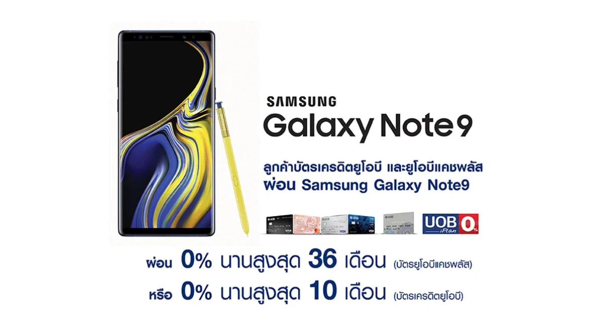 ลูกค้าบัตรเครดิตยูโอบี และยูโอบีแคชพลัส ผ่อน Samsung Galaxy Note 9 นานสูงสุด 36 เดือน