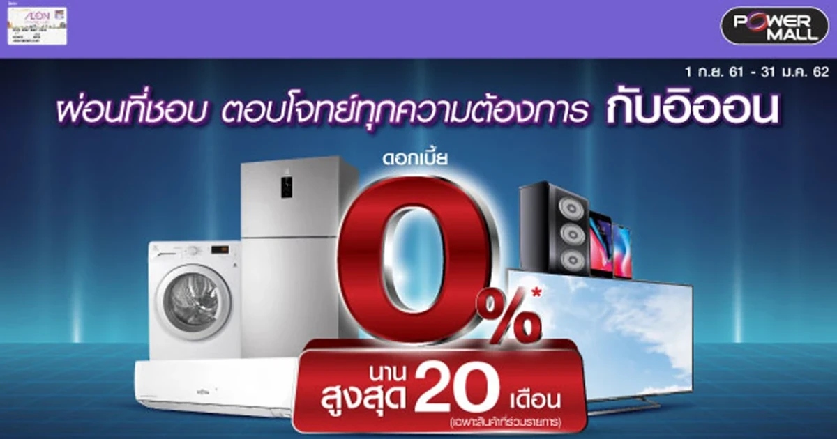 ผ่อนเครื่องใช้ไฟฟ้า 0% นานสูงสุด 20 เดือน