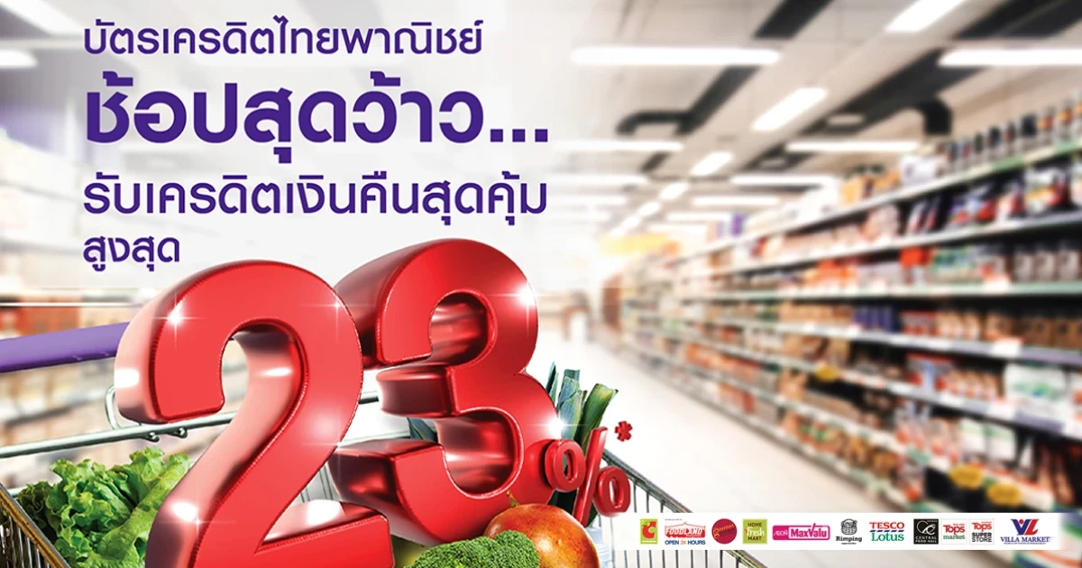 ช้อปสุดว้าว... รับเครดิตเงินคืนสุดคุ้ม สูงสุด 23% ที่ซูเปอร์มาร์เก็ต และไฮเปอร์มาร์เก็ตชั้นนำที่ร่วมรายการ สิทธิพิเศษสำหรับบัตรเครดิต SCB