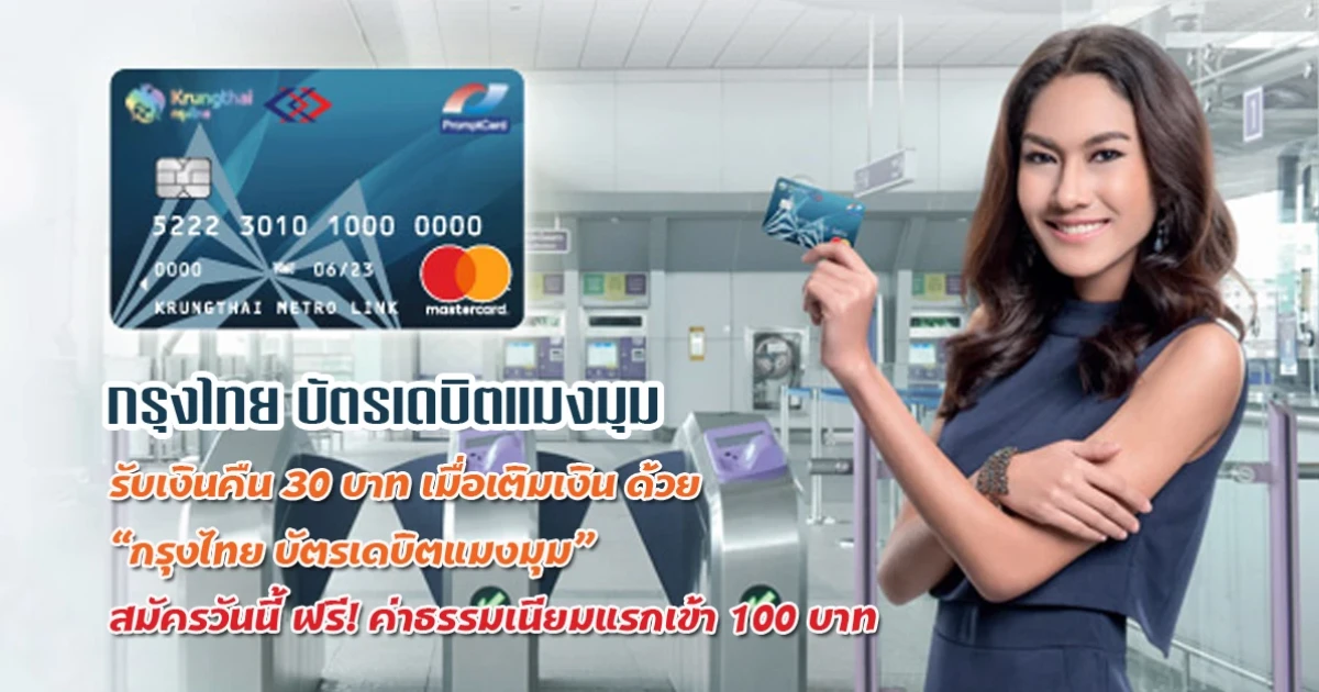 รับเงินคืน 30 บาท เมื่อเติมเงิน 300 บาท ด้วยกรุงไทย บัตรเดบิตแมงมุม สมัครวันนี้ ฟรี! ค่าธรรมเนียมแรกเข้า