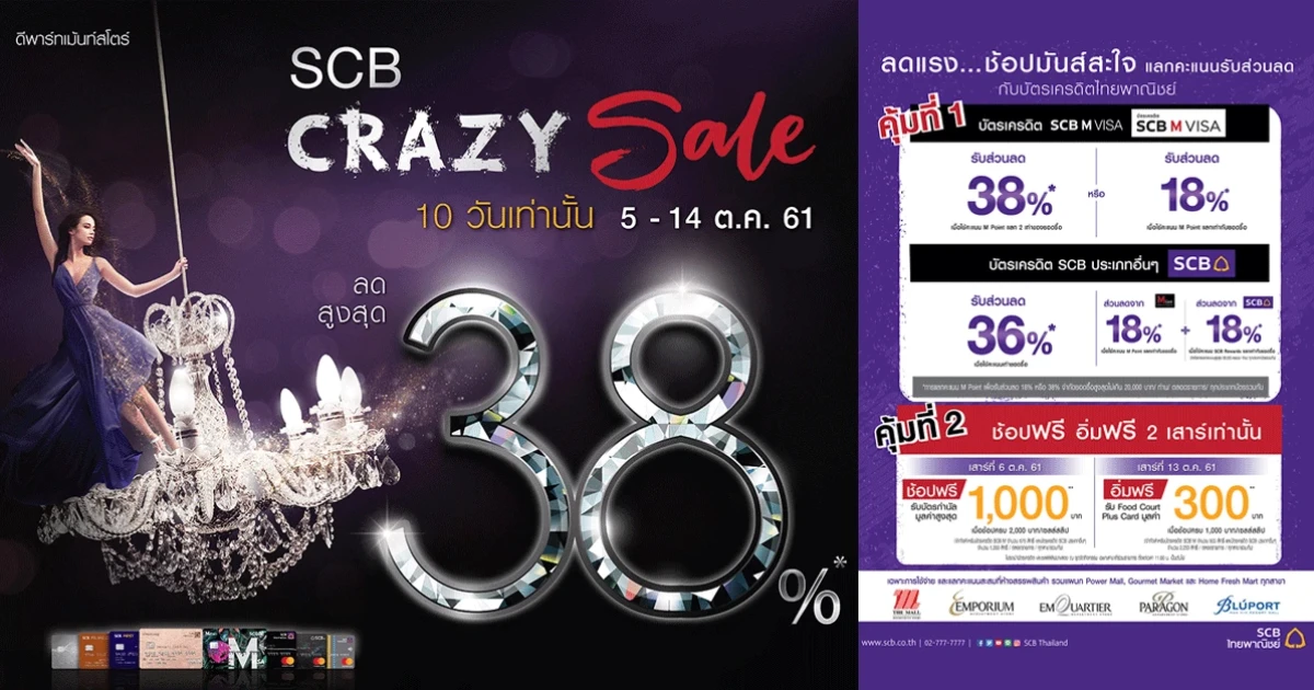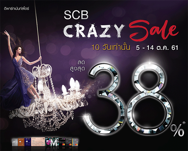 SCB Crazy Sale รับส่วนลดสูงสุด 38% เมื่อช้อป ณ ห้างสรรพสินค้าที่ร่วมรายการ ผ่านบัตรเครดิต SCB