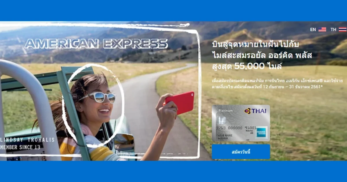 บินไปกับไมล์สะสมรอยัล ออร์คิดพลัส สูงสุด 55,000 ไมล์ เมื่อสมัครบัตรเครดิตแพลทินัม การบินไทย AMEX