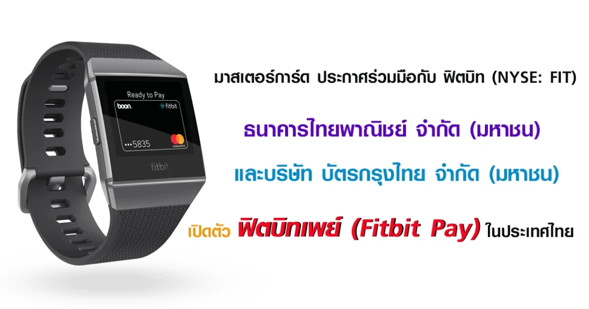 มาสเตอร์การ์ด ประกาศร่วมมือกับ ฟิตบิท (NYSE: FIT) ธนาคารไทยพาณิชย์ จำกัด (มหาชน) SCB และบริษัท บัตรกรุงไทย จำกัด (มหาชน) KTC เปิดตัว ฟิตบิทเพย์ (Fitbit Pay) ในประเทศไทย