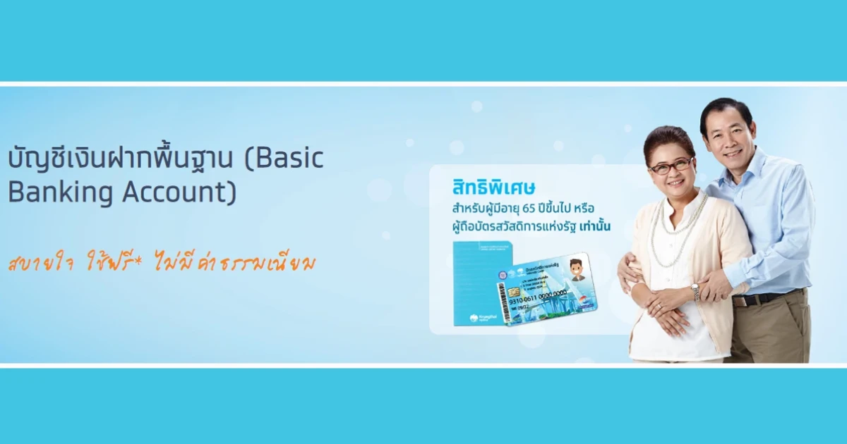 บัญชีเงินฝากพื้นฐาน (Basic Banking Account) สบายใจ ใช้ฟรี ไม่มีค่าธรรมเนียม สิทธิพิเศษสำหรับผู้มีอายุ 65 ปีขึ้นไป หรือผู้ถือบัตรสวัสดิการแห่งรัฐเท่านั้น