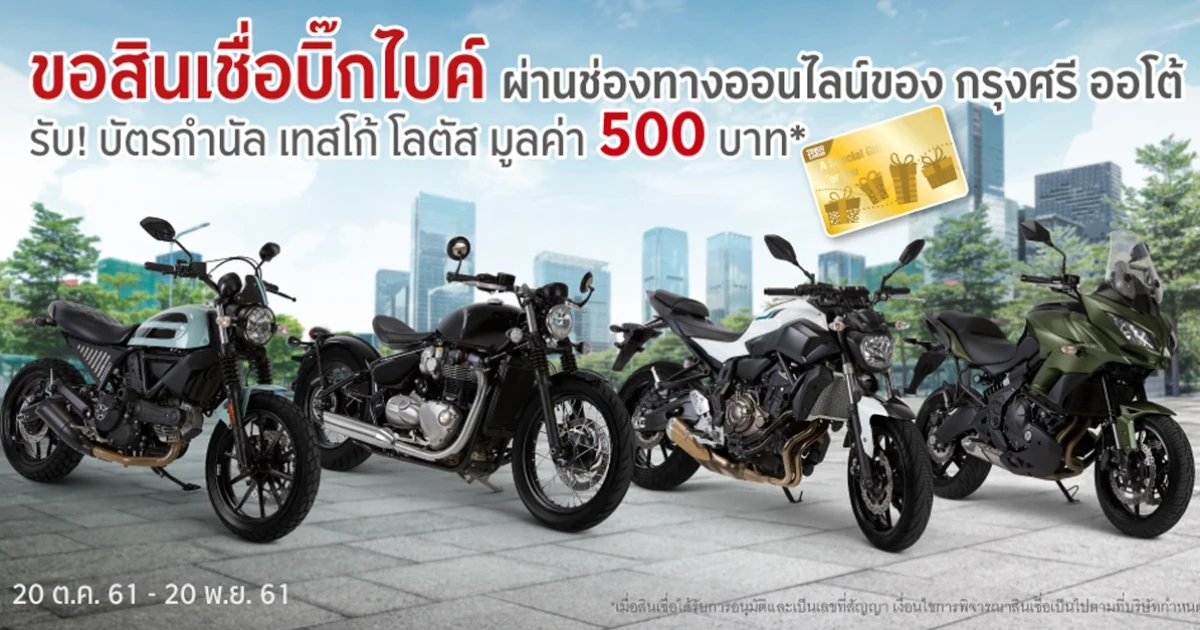 ขอสินเชื่อบิ๊กไบค์ ผ่านช่องทางออนไลน์ของ กรุงศรี ออโต้ รับ! บัตรกำนัลเทสโก้ โลตัส มูลค่า 500 บาท
