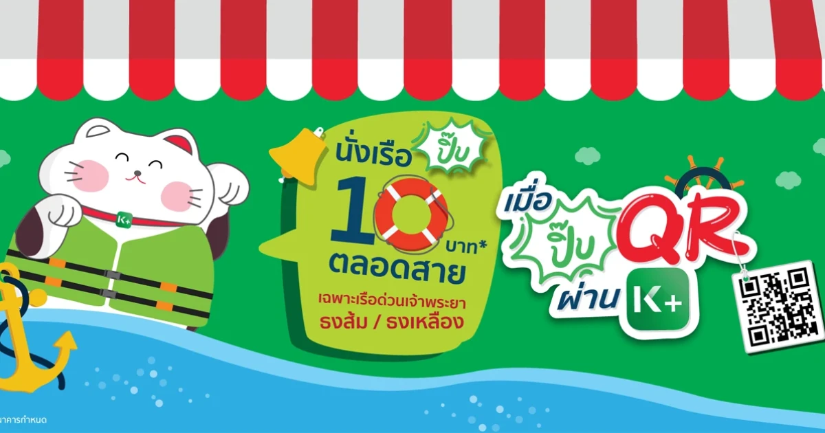 พิเศษ! นั่งเรือด่วนเจ้าพระยา ธงส้ม/ธงเหลือง 10 บาทตลอดสาย เพียงชำระด้วย QR Code ผ่าน KPLUS สงวนสิทธิ์ 3,000 สิทธิ์แรก ต่อสัปดาห์